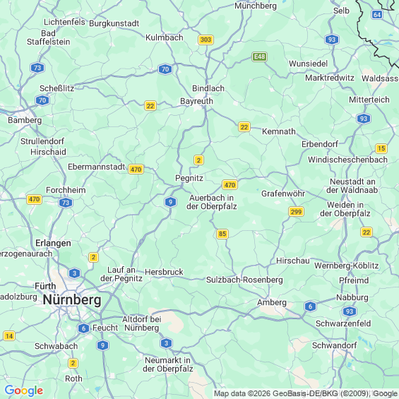 Städte in der Nähe von Auerbach in der Oberpfalz