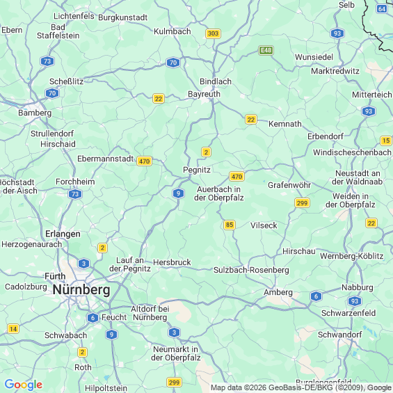 Städte in der Nähe von Auerbach in der Oberpfalz