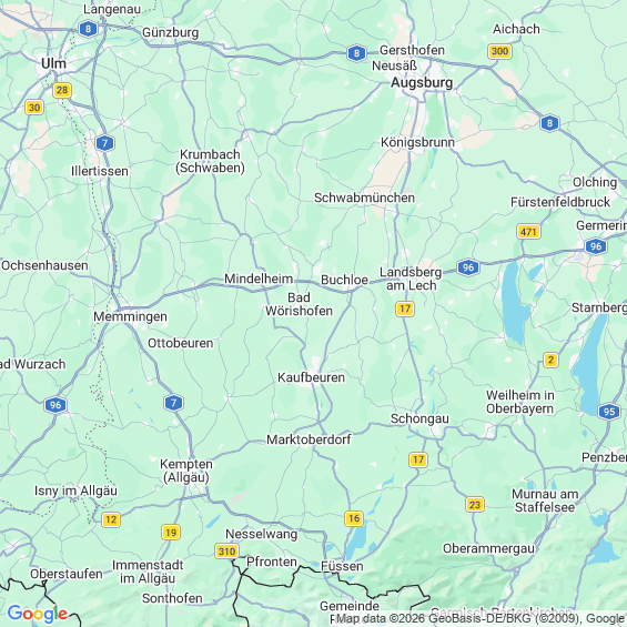 Städte in der Nähe von Bad Wörishofen