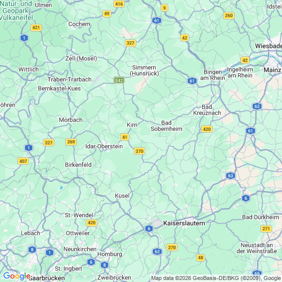 Städte in der Nähe von Bärenbach Bad Kreuznach