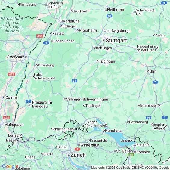 Städte in der Nähe von Donaueschingen