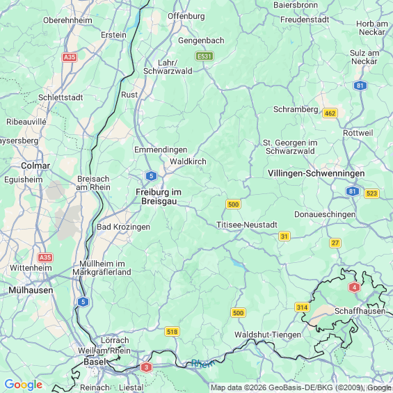 Städte in der Nähe von Freiburg im Breisgau