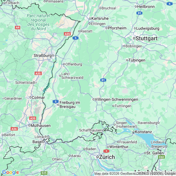 Städte in der Nähe von Freiburg im Breisgau