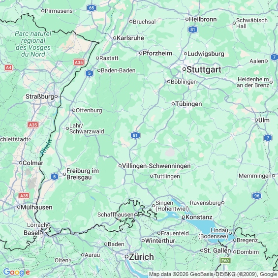 Städte in der Nähe von Freiburg im Breisgau