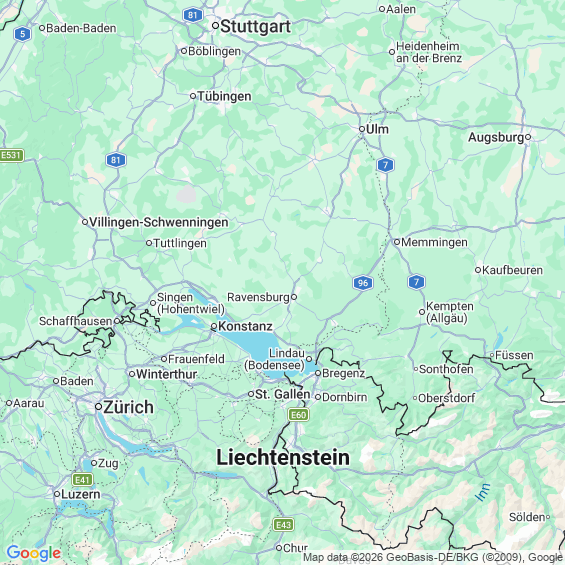 Städte in der Nähe von Friedrichshafen