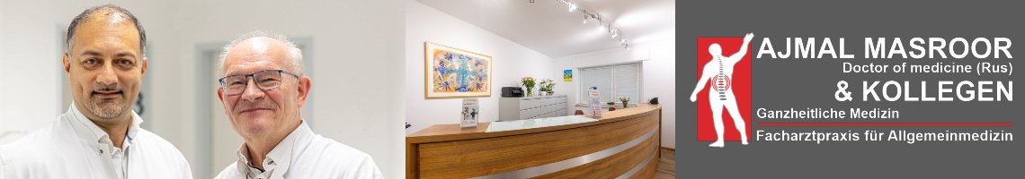 Die Facharztpraxis für Allgemeinmedizin Dr. Ajmal Masroor, Darius Heinemann & Frau Dr. phil. Farrah Cubos in Essen-Rüttenscheid bietet ein breitgefächertes medizinisches Spektrum. Unser Fokus liegt auf ganzheitlicher Medizin, Naturheilkunde, Osteopathie sowie speziellen Gesundheitsprogrammen wie Fastenkursen und sportlichen Angeboten für Patienten. Ergänzt wird unser Konzept durch zahnärztliche Themen, um eine umfassende Betreuung zu gewährleisten.