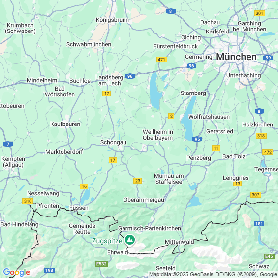 Städte in der Nähe von Hohenpeißenberg