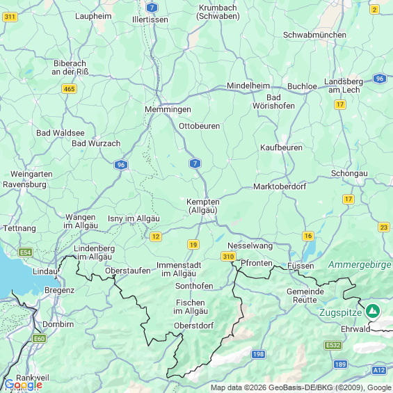 Städte in der Nähe von Kempten (Allgäu)