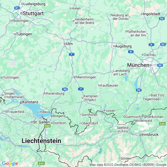 Städte in der Nähe von Kempten (Allgäu)