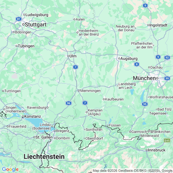 Städte in der Nähe von Kempten (Allgäu)