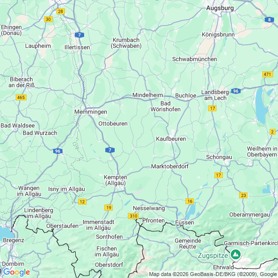 Städte in der Nähe von Obergünzburg