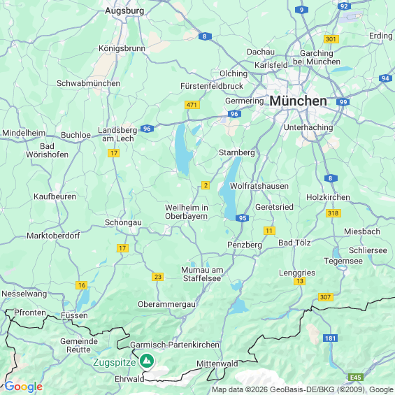 Städte in der Nähe von Weilheim in Oberbayern